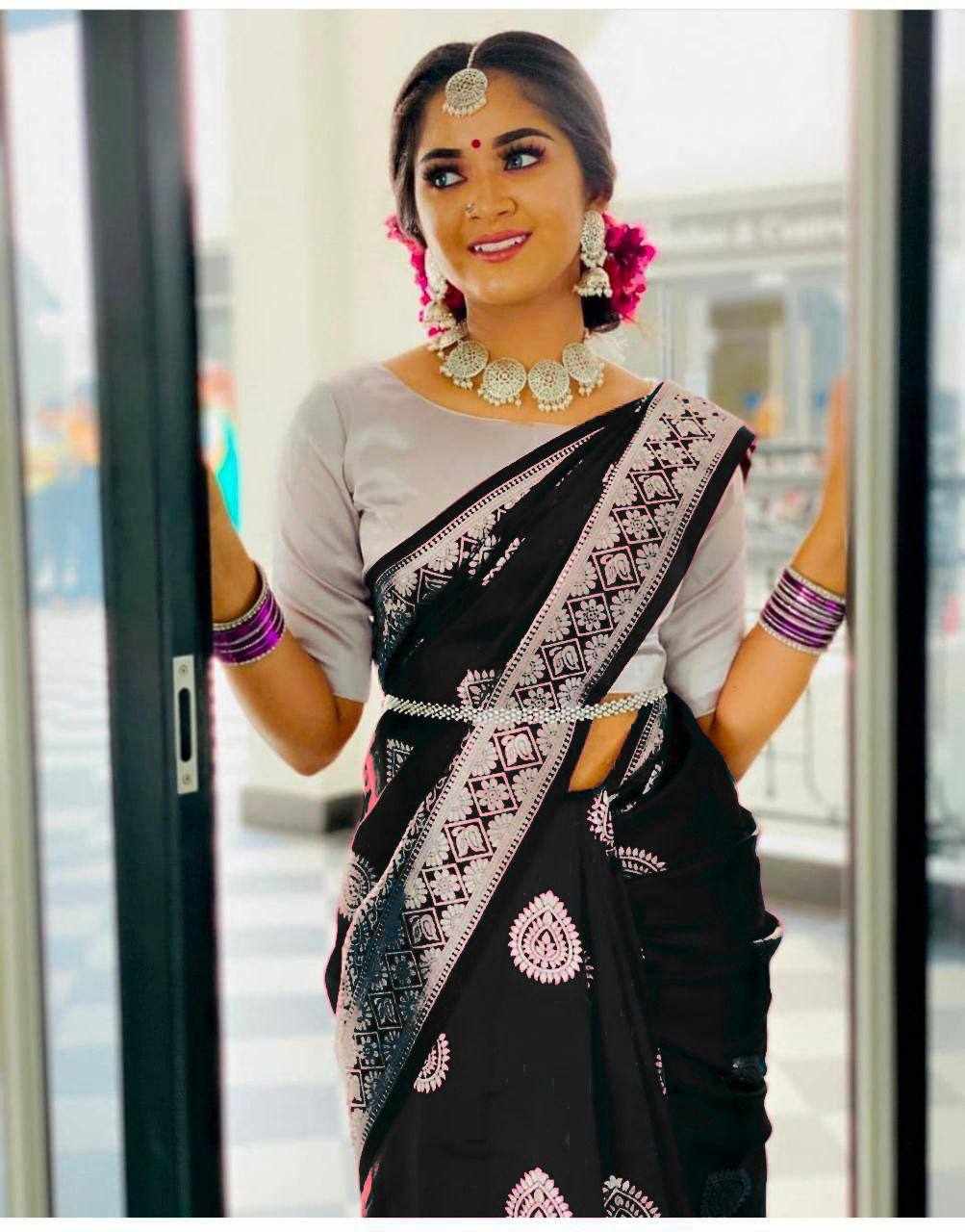| Name : | KPR 214 BLACK SOFT LICHI SILK SAREE |